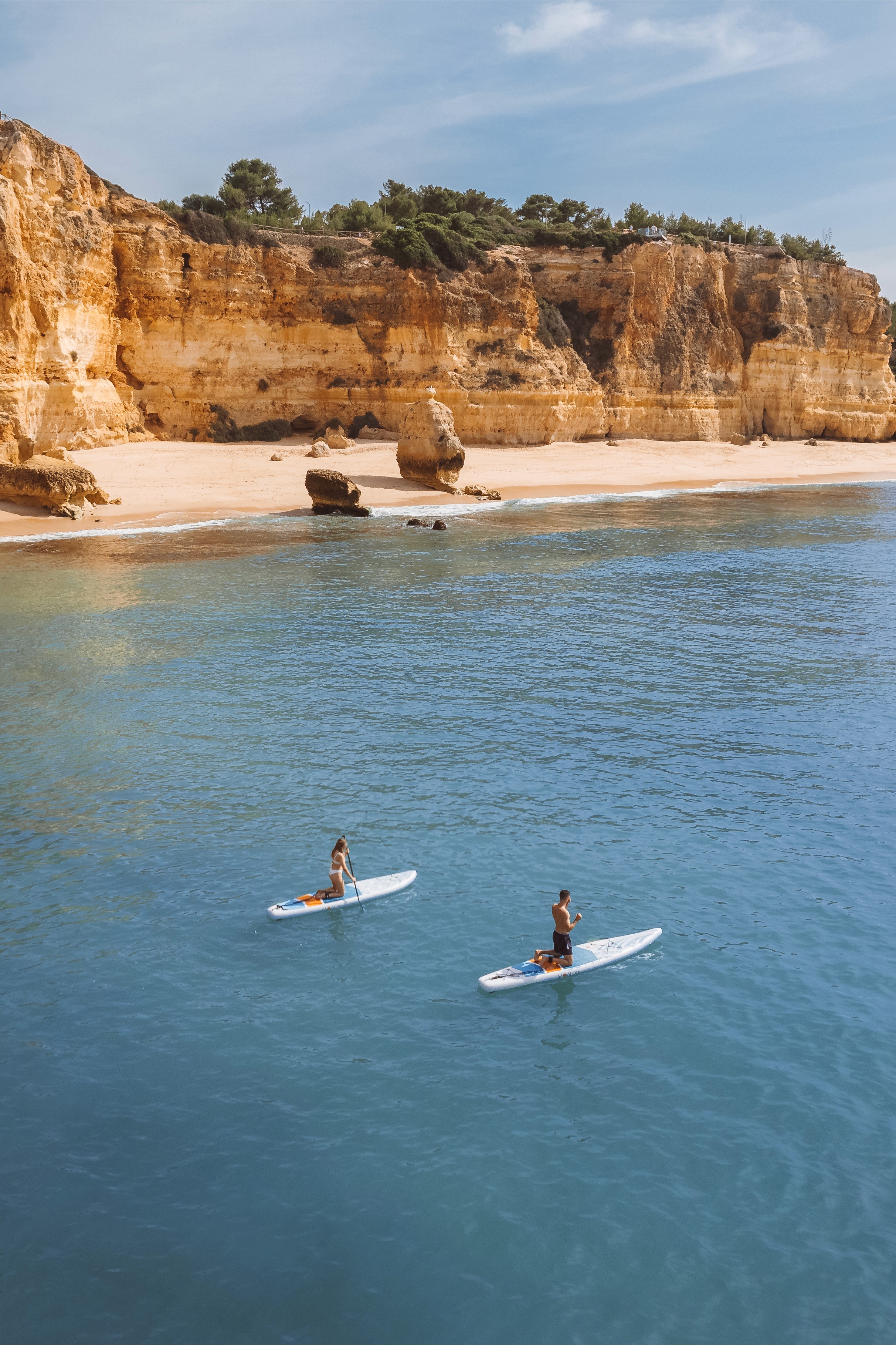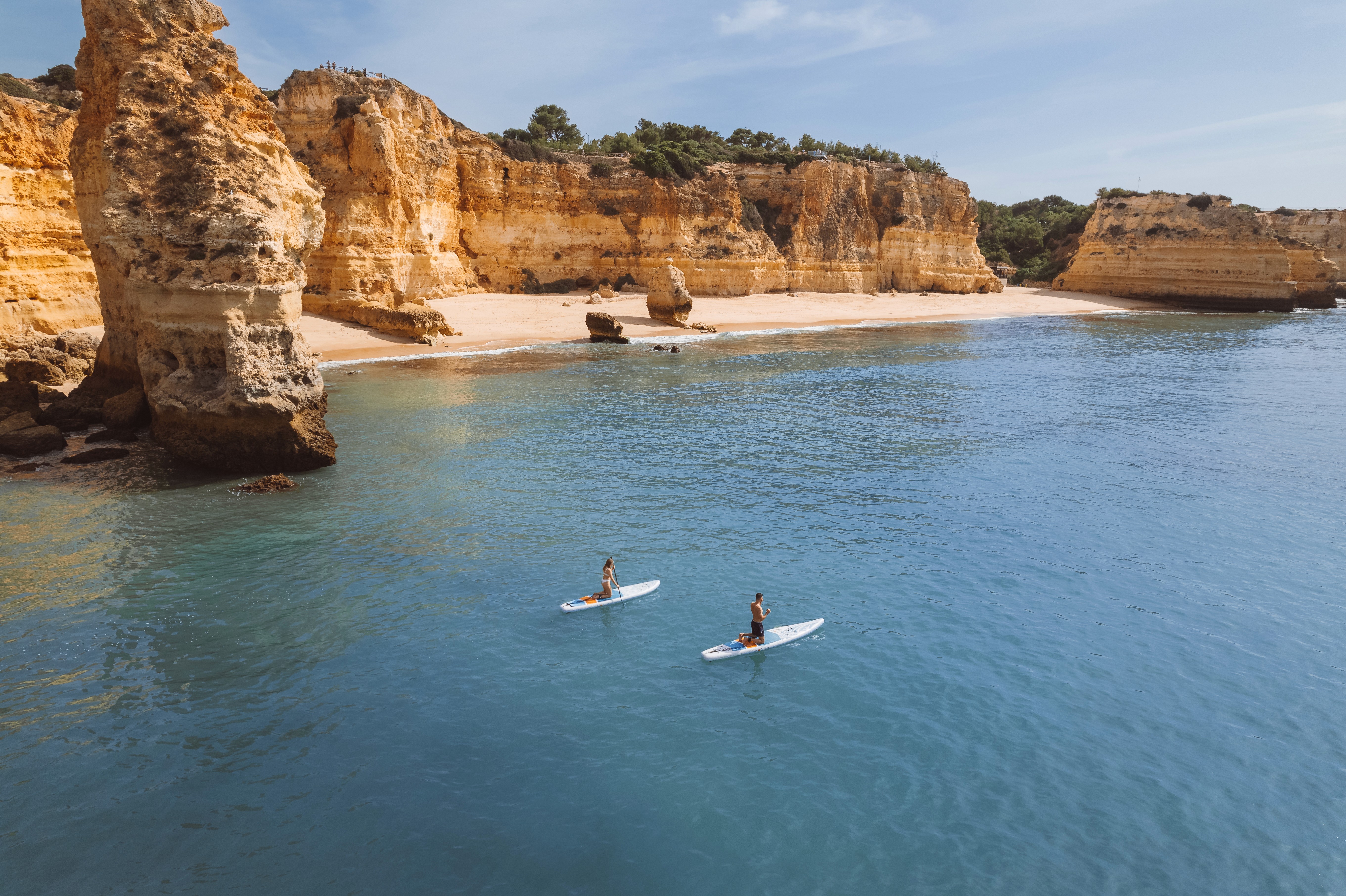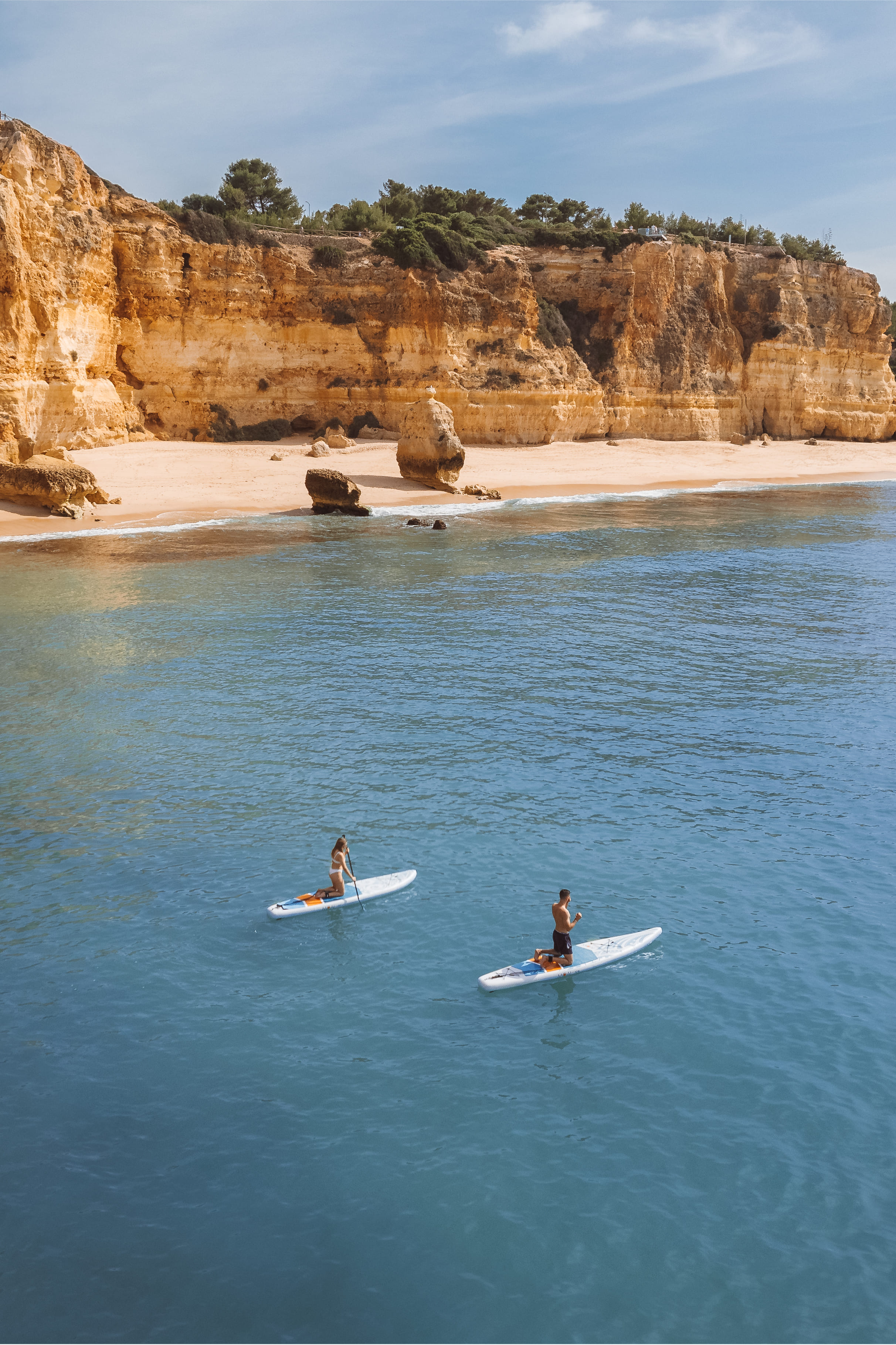 The breathtaking coastal landscapes that make Algarve a dream destination for paddleboarding.